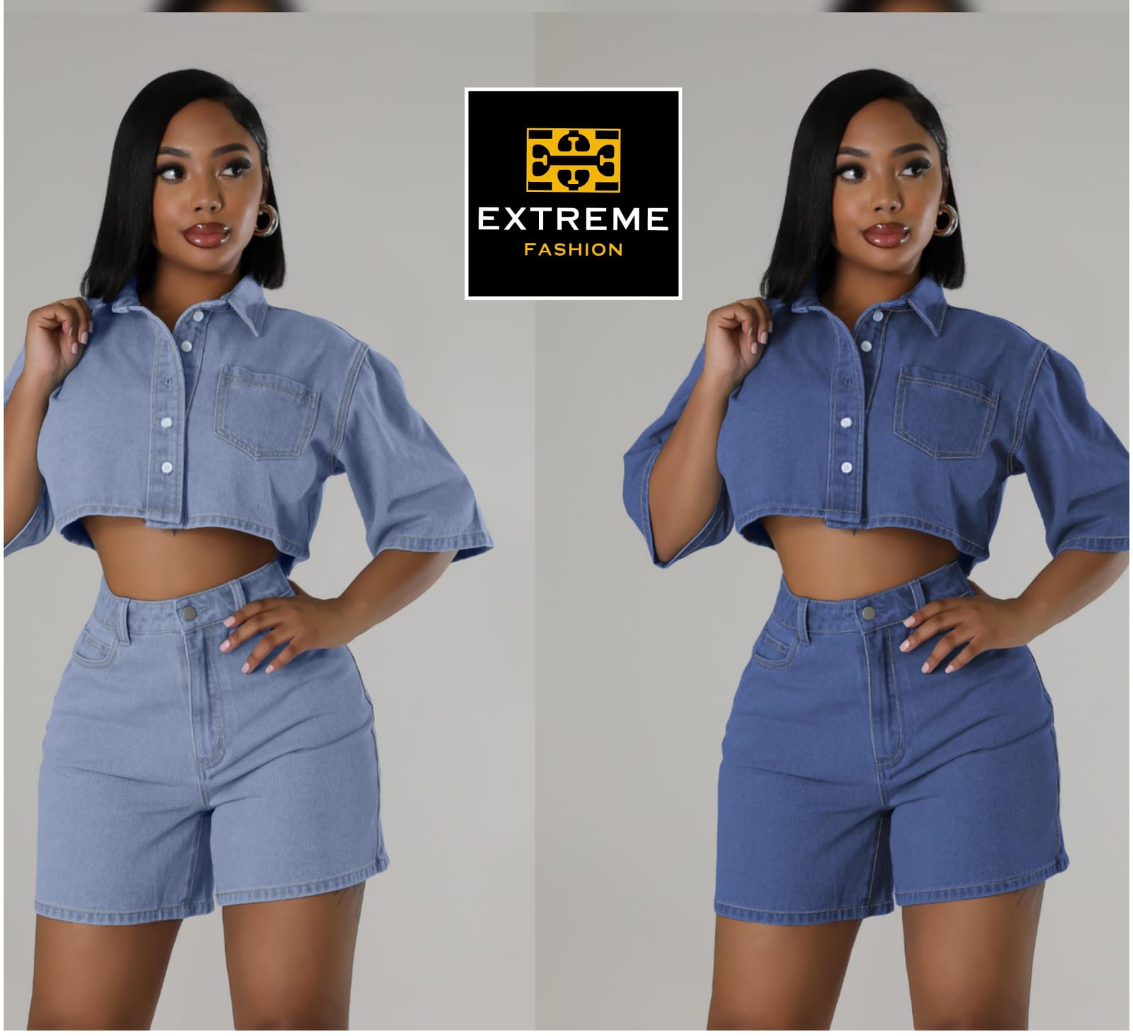 Rock a bold two-piece look with this mini denim set! Featuring a cropped top and matching shorts, this playful combo delivers serious style points. Perfect for festival season, casual hangouts, or whenever you want to turn heads. The classic denim construction keeps things timeless while the coordinated pieces make getting dressed effortless. Mix, match, or wear together—this set is your ticket to looking effortlessly cool.